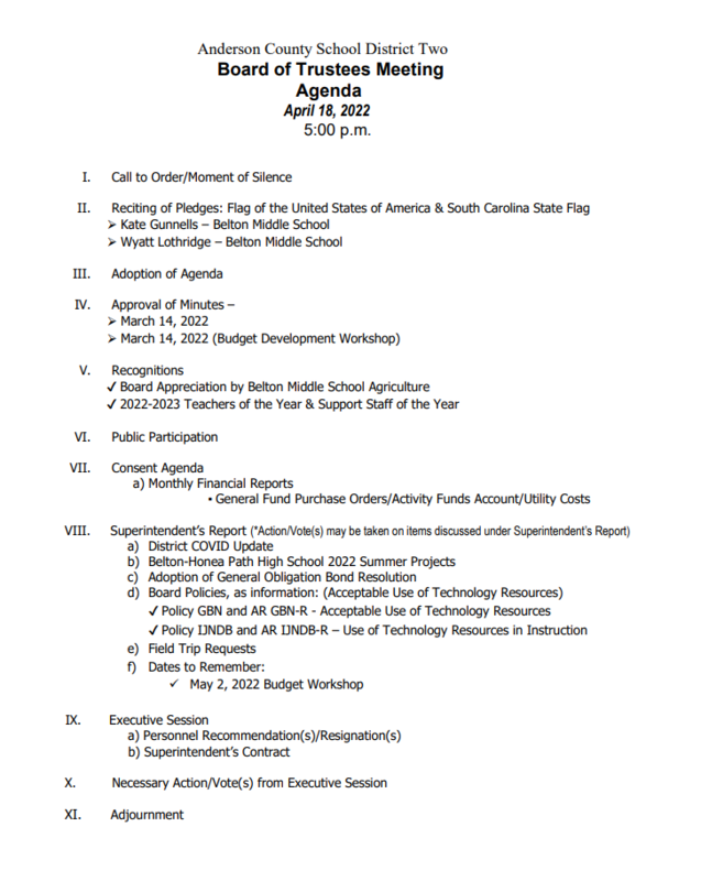 Please see the attached agenda or click on the following link for more information. April 18th Agenda- https://drive.google.com/drive...
